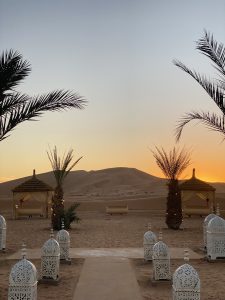 Till kvällen når vi Sahara öknen, i Merzouga, där vi övernattar i en lyxcamping.
